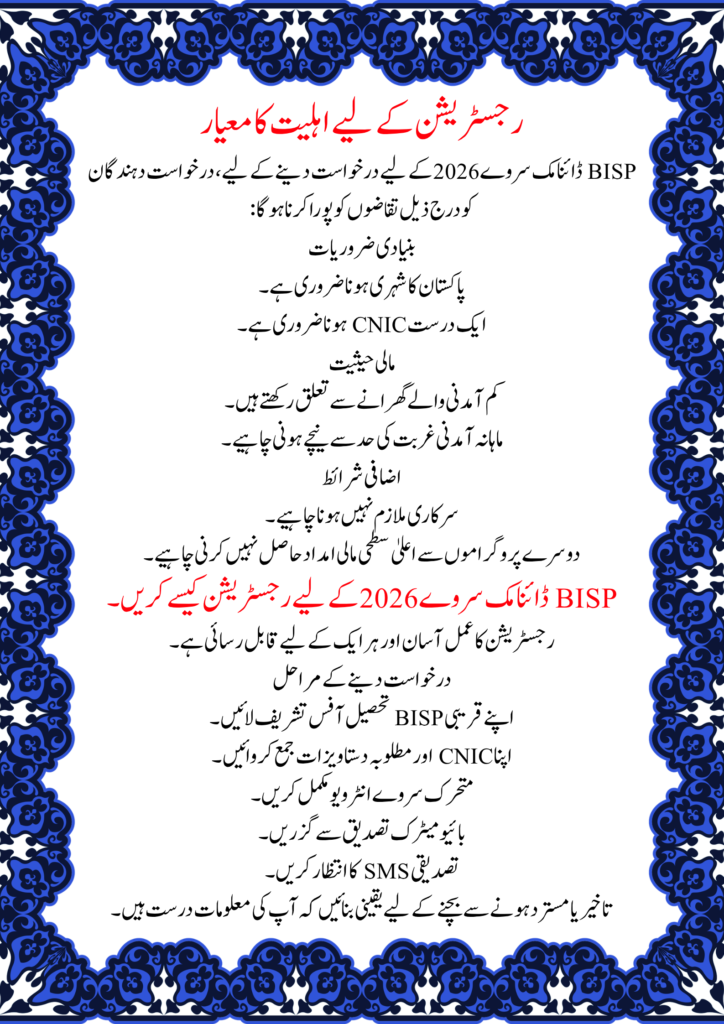 Eligibility Criteria for BISP New Registration Through Dynamic Survey 2026